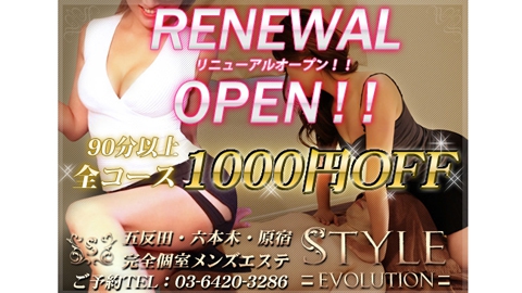 ★メンズエステプレス情報★ リニューアルオープン 90分以上 全コース1,000円OFF!